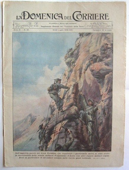 Tres ilustraciones de la revista "La Domenica del Corriere" relativa a la artillería de montaña italiana en los Alpes
